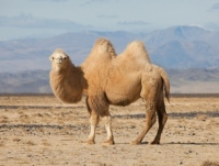 zweihöckrigen Kamele (Trampeltier) passen nahezu schöpfungsgegeben ins Bild.